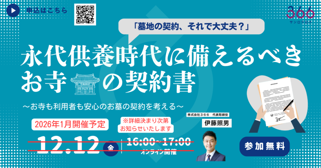 - 【セミナー日程変更のお知らせ】今月開催予定の寺院経営セミナーは2026年1月に延期させていただきます