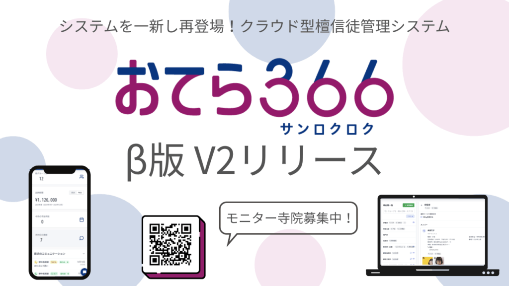 - 【新リリース】檀信徒管理システム「おてら366」β版V2の無料モニター寺院様を募集中です