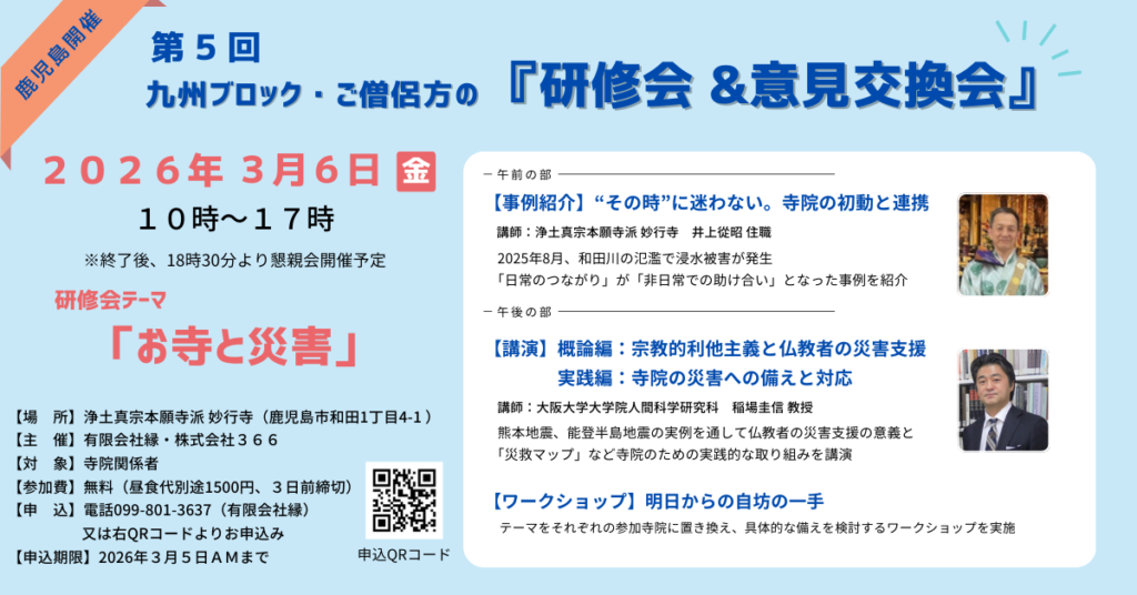 九州ブロックにお住いのご僧侶様は詳細ご確認の上、ぜひ参加ご検討ください。