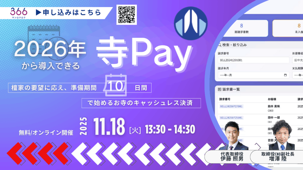 【受付終了】「寺Pay」って何だ?~少額から始める導入事例と宗教界のCLのこれから~2025年9月24日開催